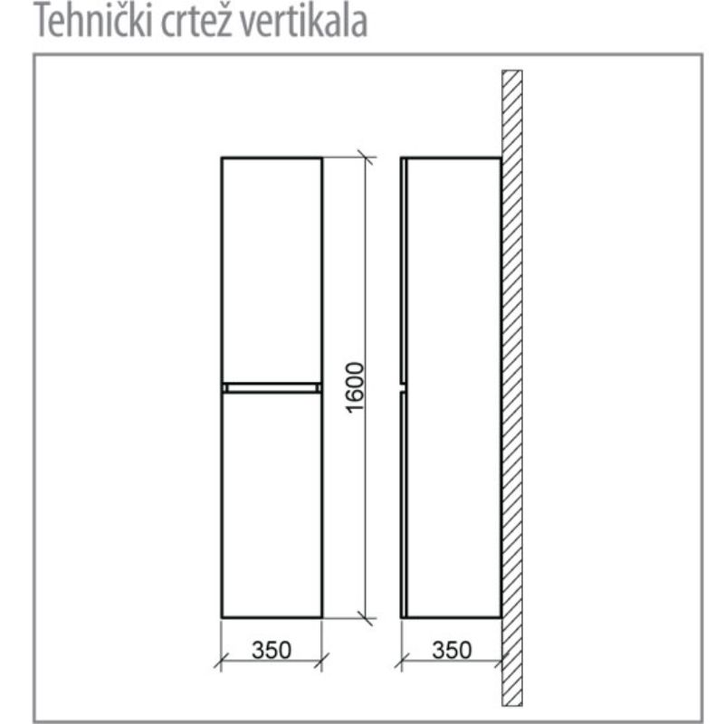 Molto vertikala sa policama je funkcionalan i lep dodatak svakom kupatilu. Zbog svog unikatnog dizajna, naročito se ističe i uklapa u kupatilima manje kvadrature. Boja hrasta mu daje jedinstven šmek, koji će trenutke provedene u kupatilu učiniti mnogo prijatnijim. Izrađena je od iverice. Sastoji se od dvoja vrata, ima mnogo prostora u unutrašnjosti, a vrata imaju sporo-zatvarajući mehanizam kako bi sprečila oštećenja.
